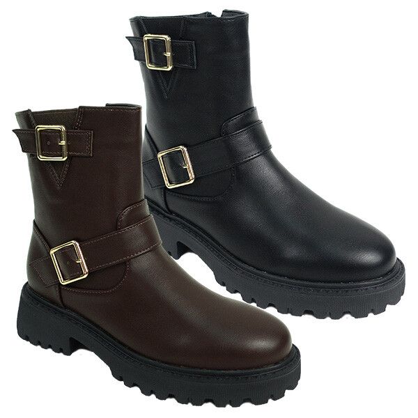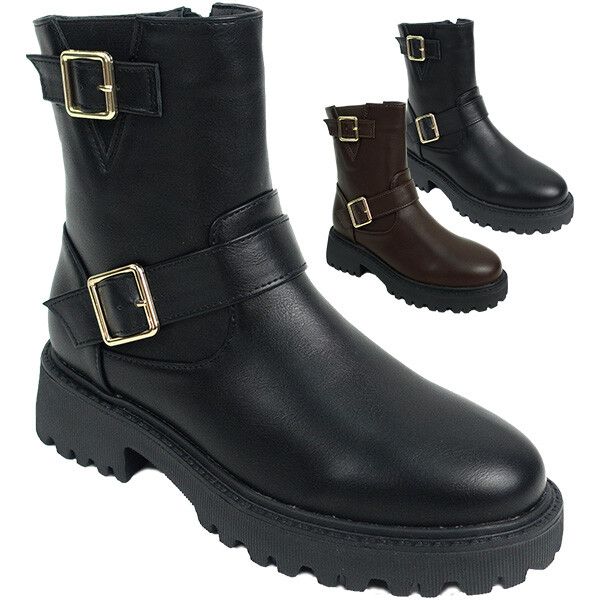 エンジニアブーツ ブーツ レディースシューズ レディースファッション 靴 厚底 ショートブーツ シンプルデザイン 履き口広め 【送料無料】