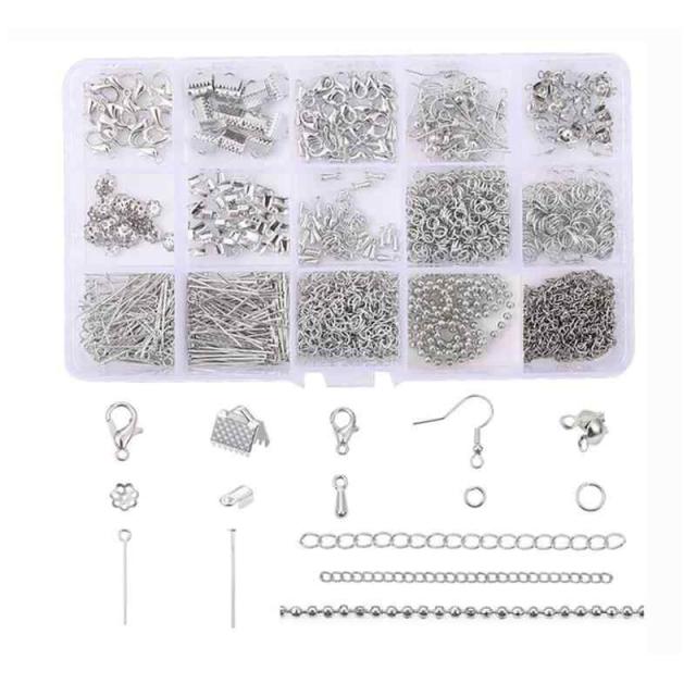 YFFSFDC 金具セット 15種 ハンドメイド アクセサリーパーツセット ゴールド アクセサリー パーツ ジュエリー ボールチップ チェーン ワニ口 DIY用 手芸用品 (シルバー)