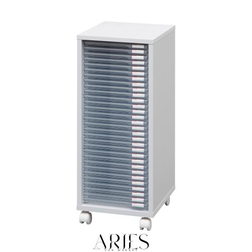 ●商品サイズ(cm):幅約28.9×奥行約35.9×高さ約70(キャスター取り付け時) ●引出内寸(cm):超浅型:幅約23×奥行約32.1×高さ約1.4 ●重量:約12.9kg ●引出し仕様:超浅型30段 ●耐荷重:超浅型引出し:0.5?、全体:15? ●材質 本体:プリント化粧紙パーティクルボード 引出:スチロール樹脂 キャスター:ポリプロピレン樹脂 ●グリーン購入法適合商品