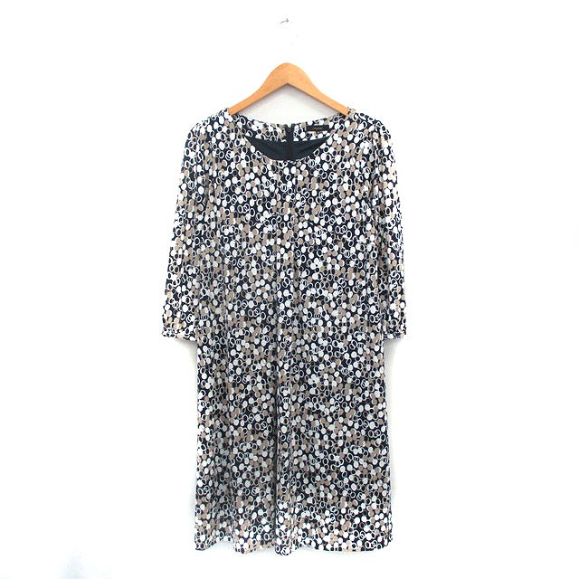 【中古】セブンアイディコンセプト 7-IDconcept ワンピース 七分袖 ロング ドット 38 ネイビー 紺 /KT26 レディース