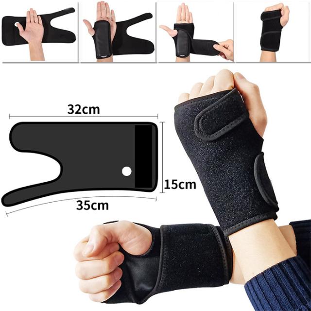 2.手首サポーターには脱着式の金属プレートが入っています。手首を固定して、手首の負担をサポートします。