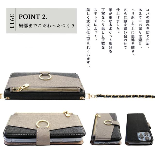 カードポケットには日常よくお使いになるポイントカードや定期券を3枚、サイドポケットには、お財布代わりにお札やレシートを収納することが可能です。