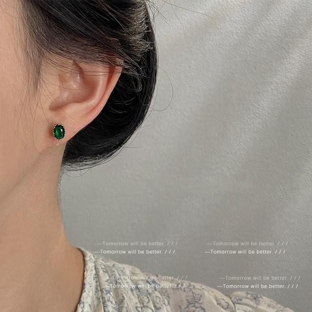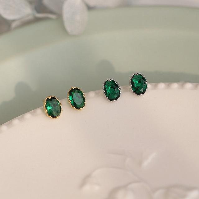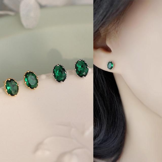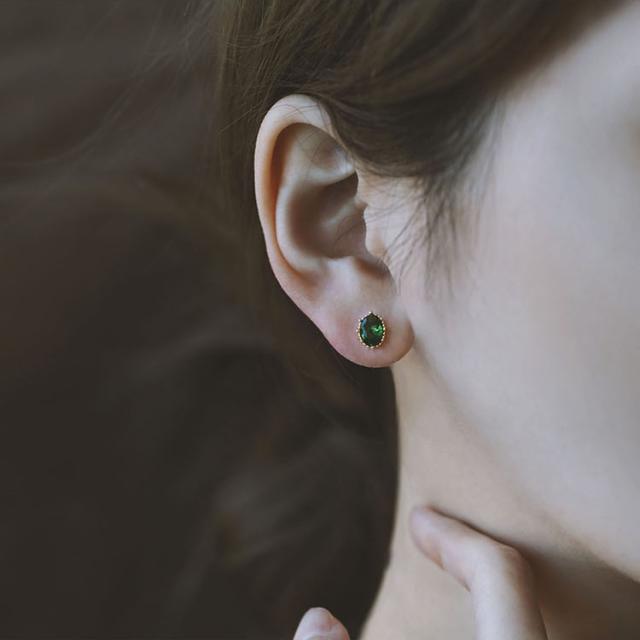 オーバルカットを施したエメラルドグリーンピアス