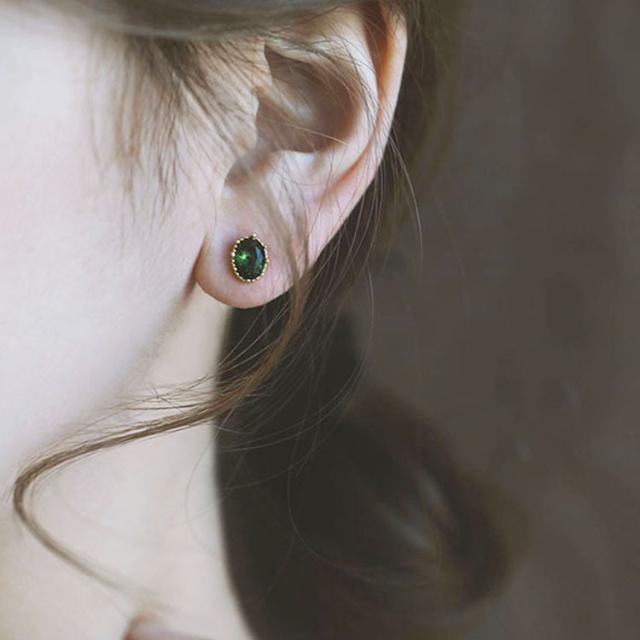 - 食品のコマーシャルを見て、とても綺麗な緑色だったので、買うことを決めました。 ピアスが届いて開けてみたら、思い通りの色と丁度良い大きさで、買って良かったなと思いました。ゴールドの縁飾りも感じが良いです...