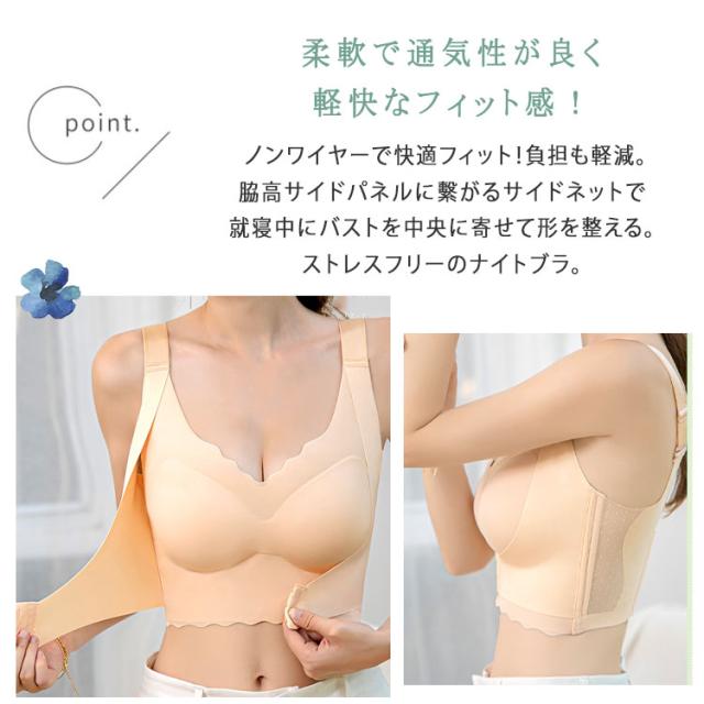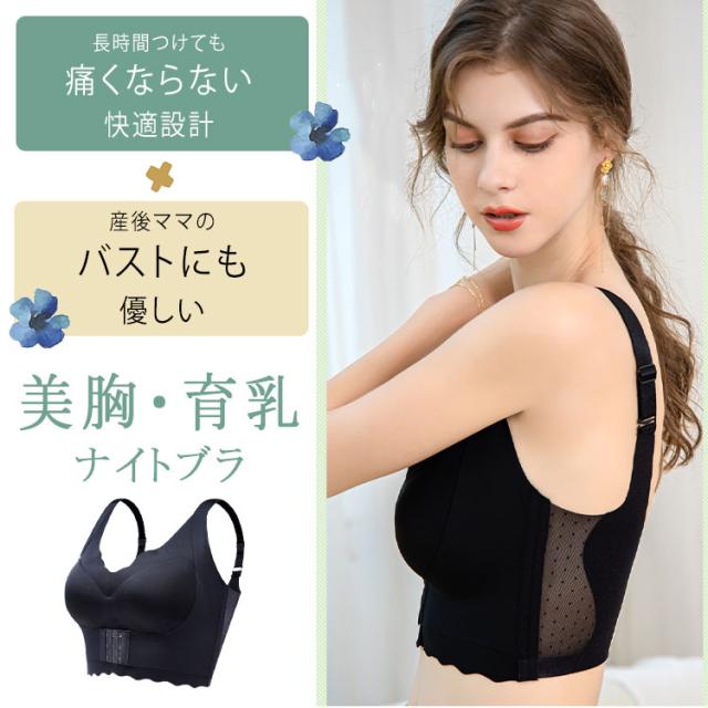 ナイトブラ 育乳ブラ 貧乳 バストアップ ノンワイヤーブラ 自胸メイク 昼夜兼用 敏感肌対応 かわいいデザイン 脇高設計 脇肉キャッチ 谷間メイク 苦しくないブラ 産後ブラ 大きいサイズあり 姿勢補正 背筋を伸ばす フロントホック 4段6列