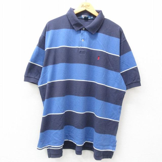 【商品名】 XL★古着 ラルフローレン 半袖 ブランド ポロ シャツ メンズ 90年代 90s ワンポイントロゴ コットン 黄色他 ボーダー