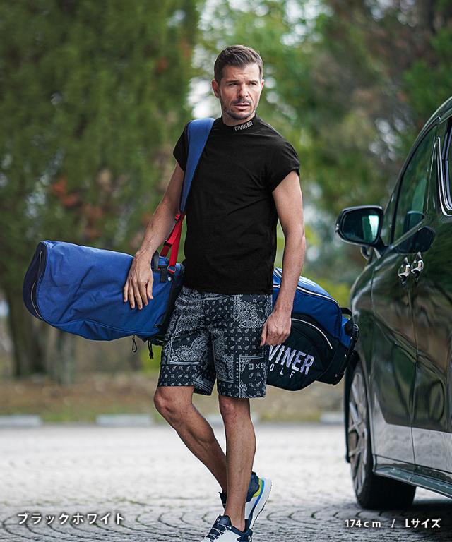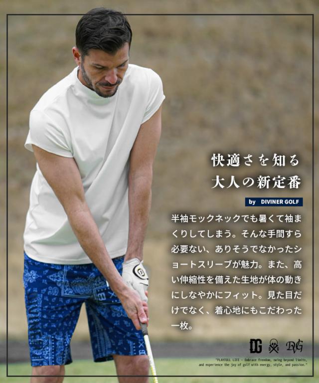 ゴルフ メンズ カットソー 半端袖 ノースリーブ 新作 夏新作 白黒 ホワイト ブラック DIVINER GOLF ゴルフウェア 半袖 カットソー ちょい悪 オラオラ系 お兄系