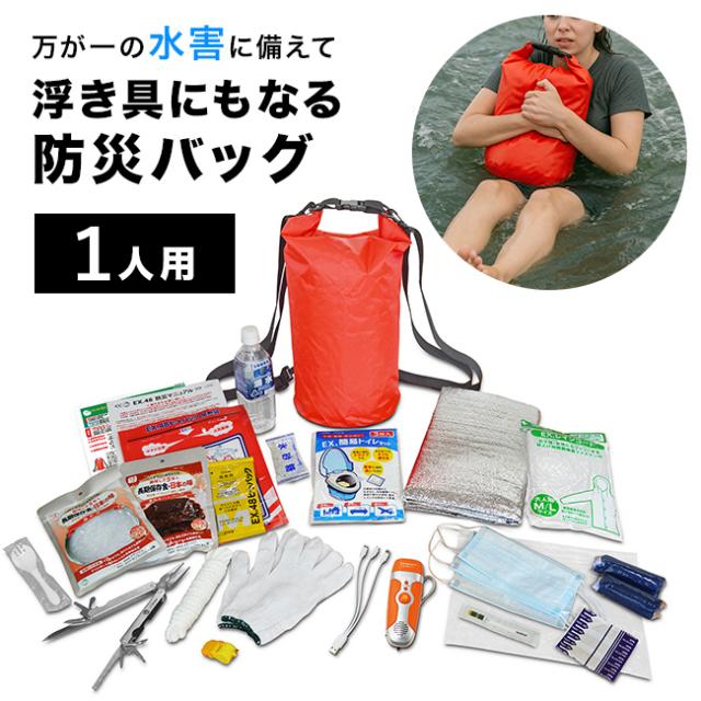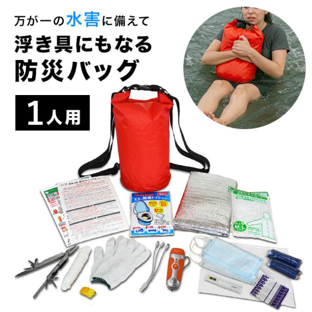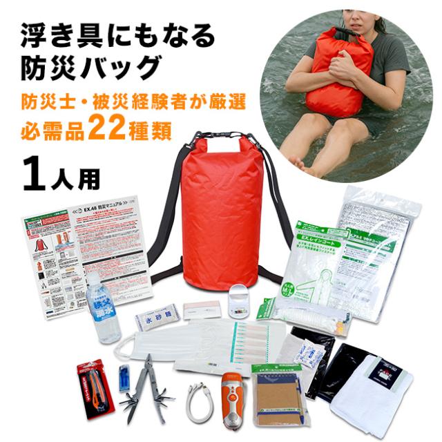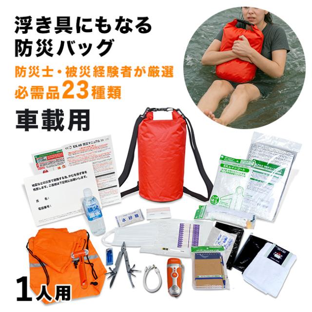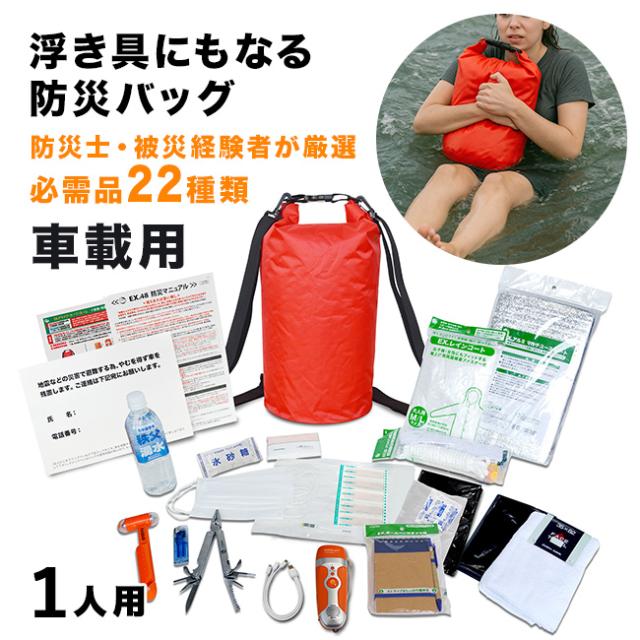 EX.浮き具になる 防水バックパック 車載防災セット(防災バッグ 1人用 非常用持ち出し袋 リュック 置き場所 自宅 寝室 災害備蓄 セット リュックサック 地震 洪水 災害 ドライブ・セーフ・ホーム) 1-2W