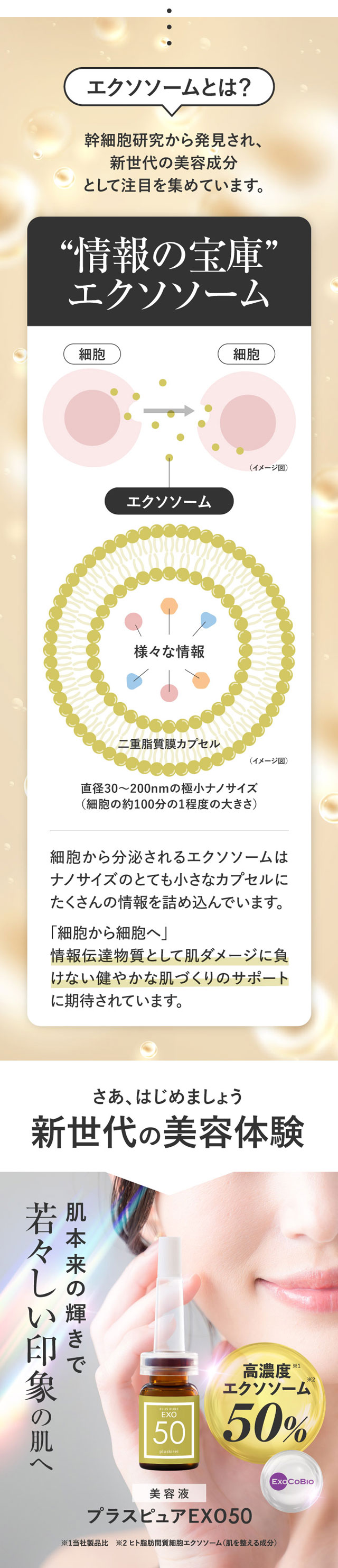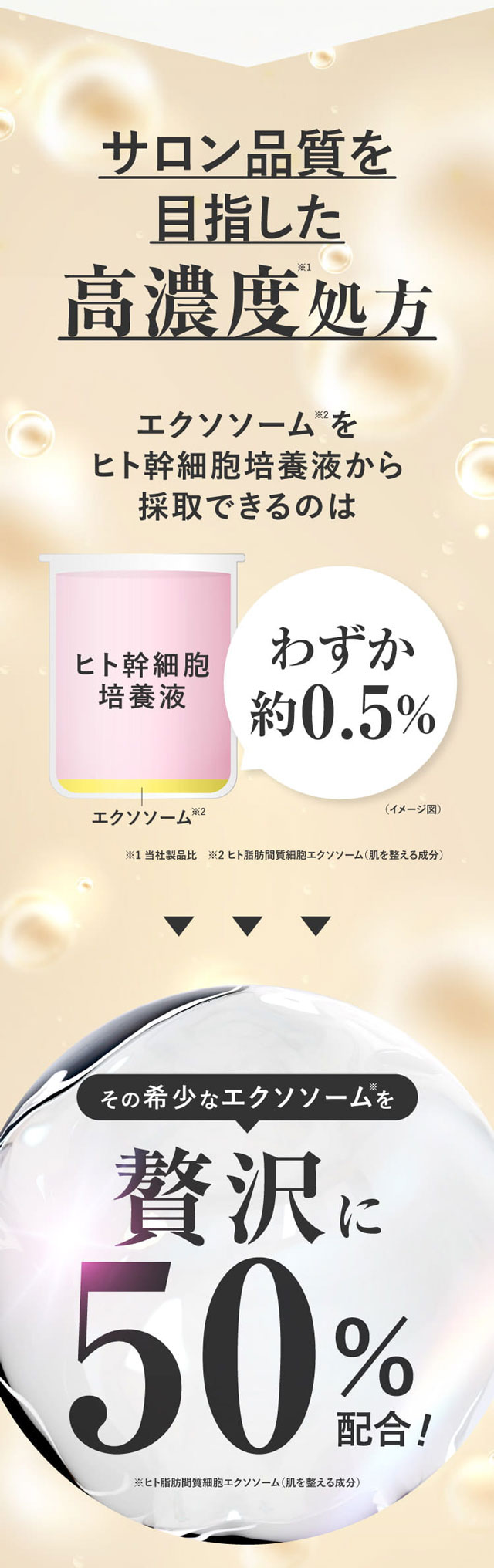 ヒト幹細胞培養液にわずか0.5%しか含まれないエクソソーム(※2)を50%配合!