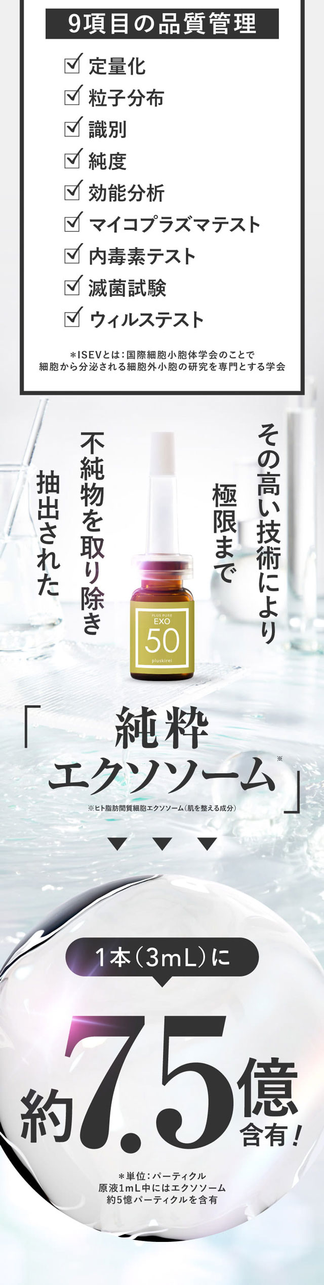 高濃度(※1)かつ確かな品質でサロン施術レベルを目指したエクソソーム(※2)美容液。