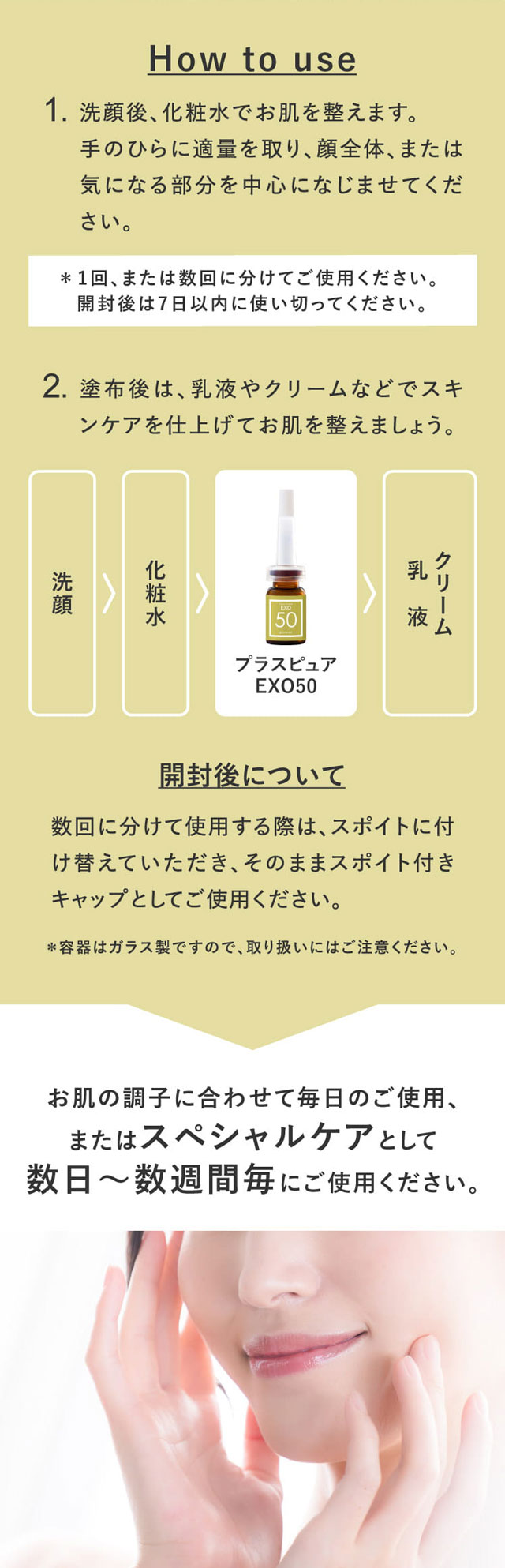 | 商品名 | プラスピュアEXO50 ●配合成分につきましては、上記の商品名をクリックしてご確認ください |