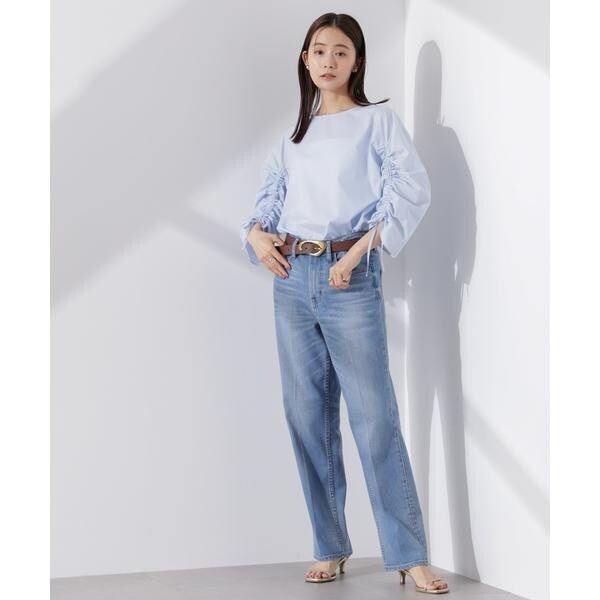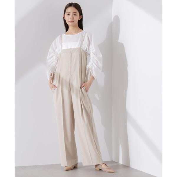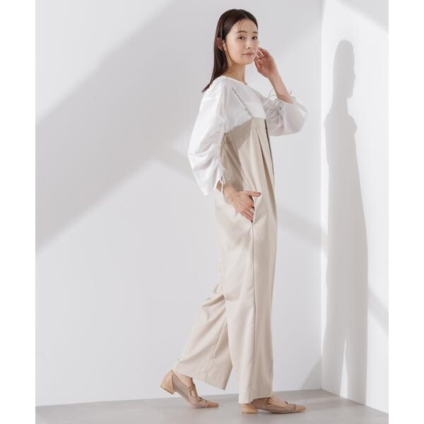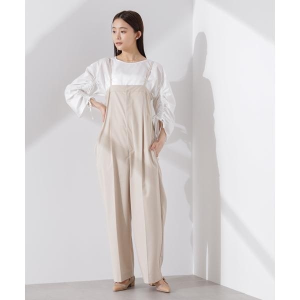 ・スラックスパンツにインし袖のギャザーがアクセントとなりドレッシーな着こなしも◎