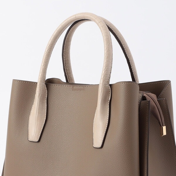 持ち手はクロコ調の型押し合皮を使用してアクセントにし、