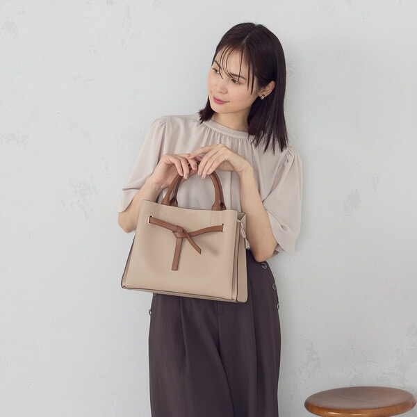 ・トレンドの一枚合皮を使用し、軽く仕上げたリボン付きトート。