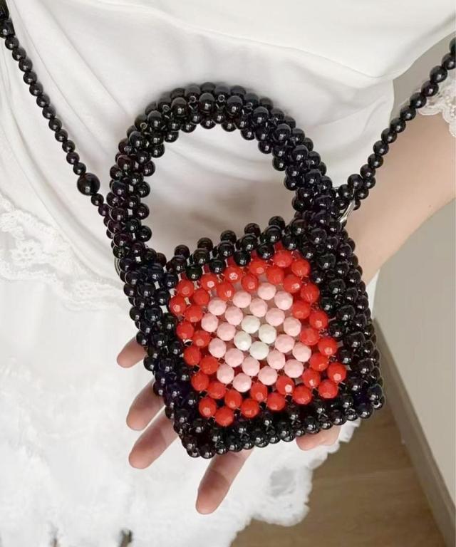 レトロ感溢れるビーズで作られたミニハンドバッグ。繊細な手作りの仕上がりで、どこか懐かしさを感じさせるアイテム。コンパクトながらも存在感があり、シンプルなコーディネートに華やかさをプラス。豊富なカラーバリエーションで、個性に合わせた選択が可能。