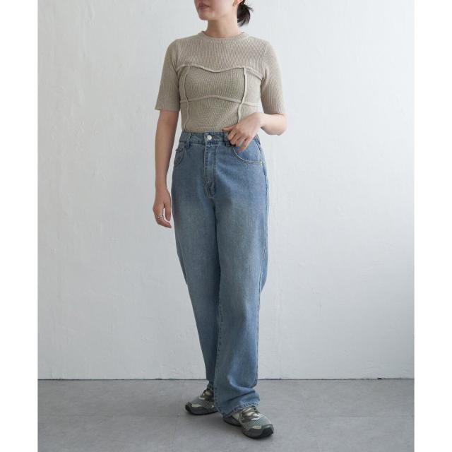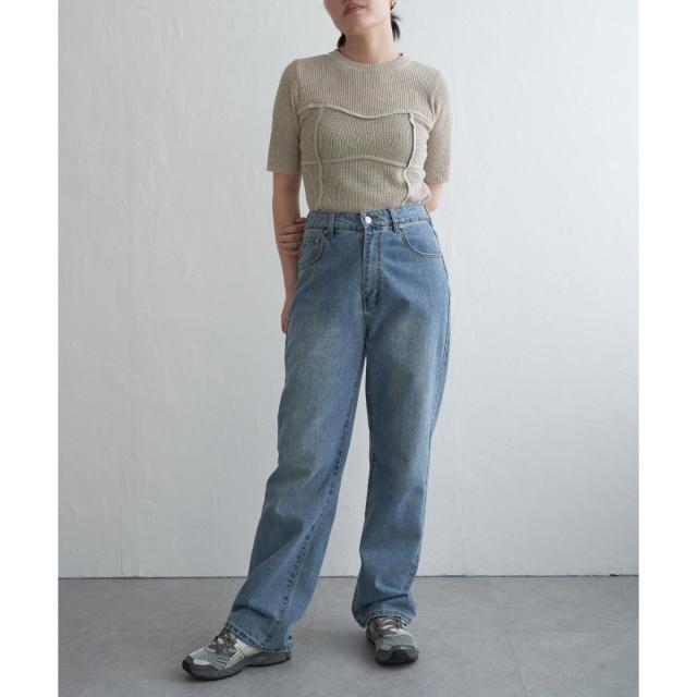 デニム+華奢なアクセでまとめると、トップスのディテールが際立ちます。