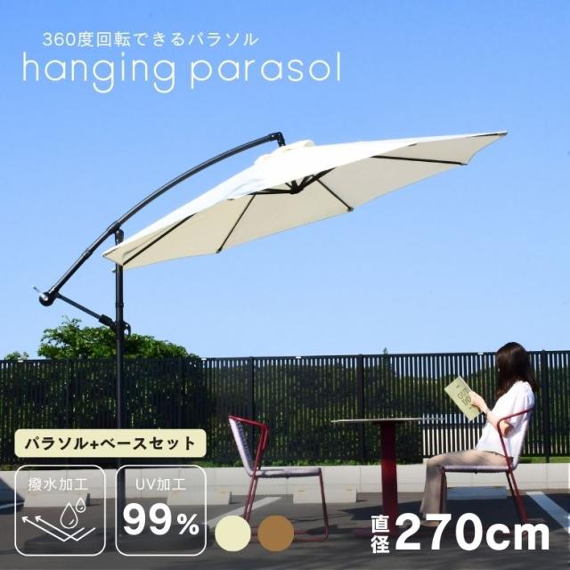 ベース4個セット ガーデンパラソル 大型 270cm ガーデンパラソルセット ガーデンファニチャー 日よけ 折り畳み おしゃれ ハンギングパラソル360 2.7m ブラウン ベージュ【大型宅配便】