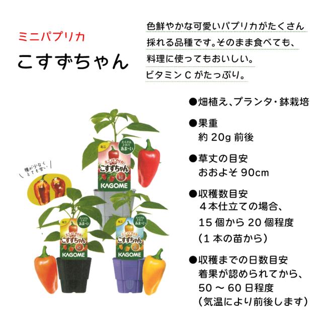 KAGOME カゴメのミニパプリカ 苗 こすずちゃん 3種 セット 3号ポット 紅 黄 橙 野菜苗 家庭菜園 ベランダ菜園
