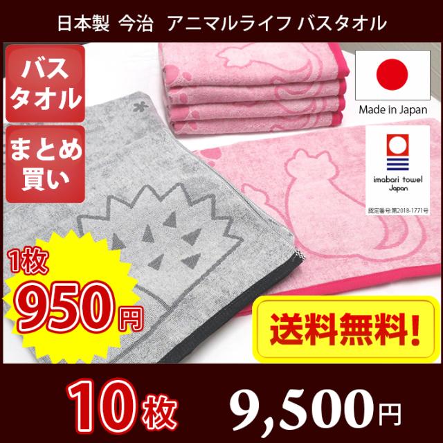 【送料無料】10枚セット 日本製 今治タオル アニマルライフ バスタオル 600匁 薄手 / 今治 タオル バス 国産 ネコ ハリネズミ