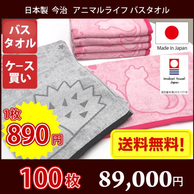 【送料無料】同色100枚セット(個包装なし) 日本製 今治タオル アニマルライフ バスタオル 600匁 薄手 / 今治 タオル バス 国産 ネコ ハリネズミ
