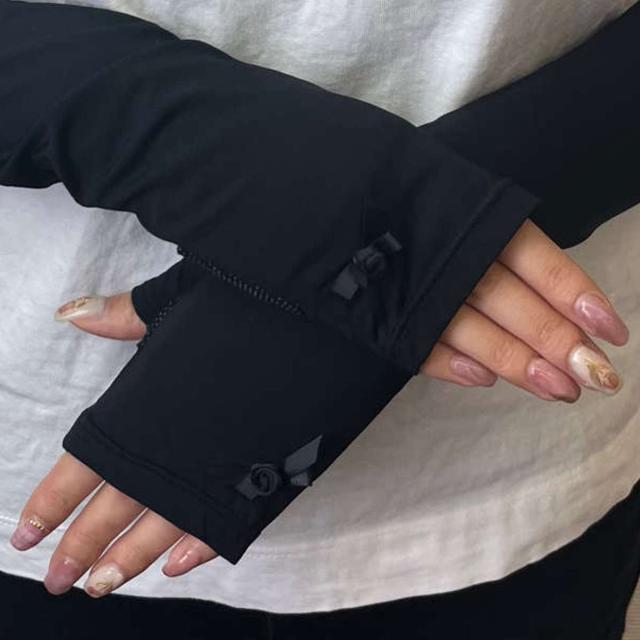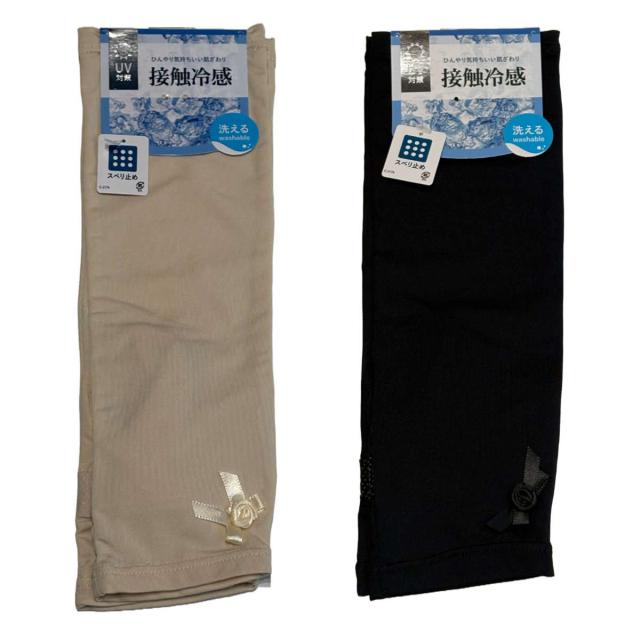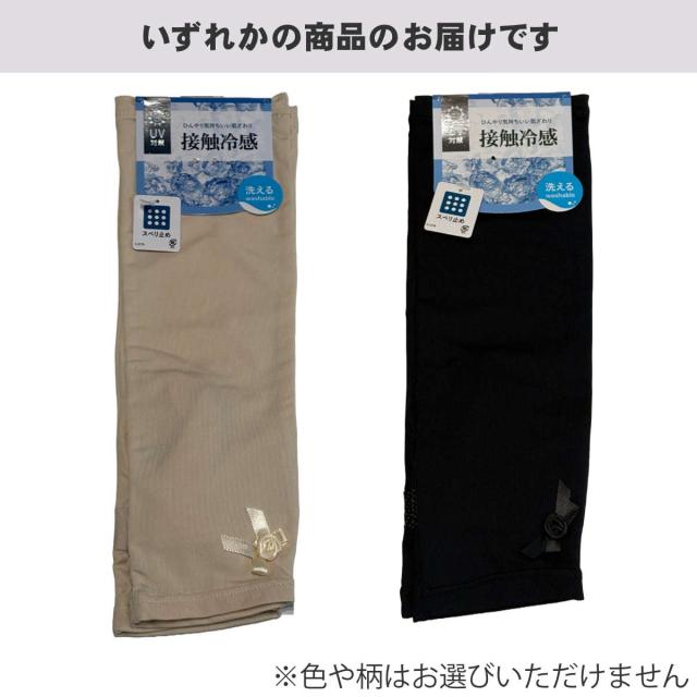 アームカバー アームミドル 接触冷感 リボン付き ※色は選べません ( 手袋 腕カバー 夏用 UVケア 指なし スマホ uv 日焼け防止 運転 滑り止め付き 1双 冷感 レディース 車 自転車 スマホ操作 手の甲 肘下 指切り 日焼け対策 )