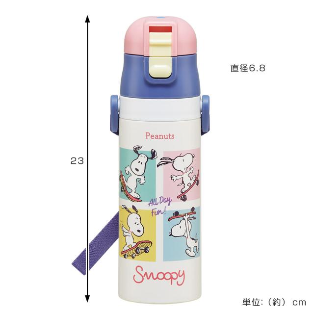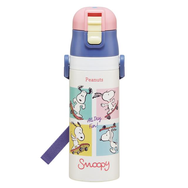 水筒 470ml 超軽量ダイレクトボトル スヌーピー スケートボード ( 保冷 軽量 直飲み ワンタッチ ステンレスボトル 子供用水筒 子供 直のみ 軽い 超軽量 ワンプッシュ ダイレクトボトル ダイレクト ボトル ステンレス )