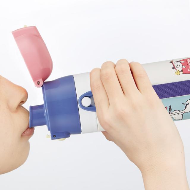 水筒の蓋はボタンを押すだけで開けることができるワンタッチ式です。飲み終わったら蓋をカチッと閉めるだけなので、小さなお子様でも簡単に開閉できます。