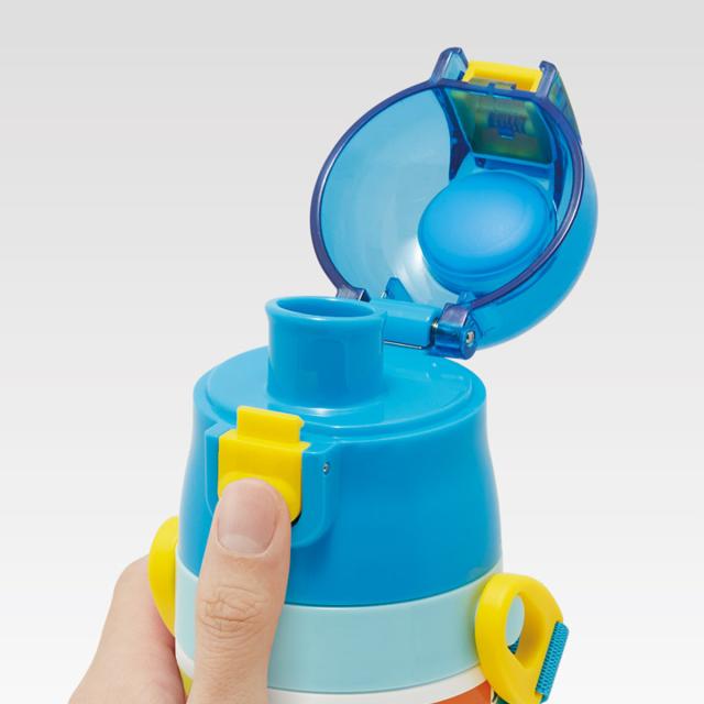 水筒の蓋はボタンを押すだけで開けることができるワンタッチ式です。飲み終わったら蓋をカチッと閉めるだけなので、小さなお子様でも簡単に開閉できます。