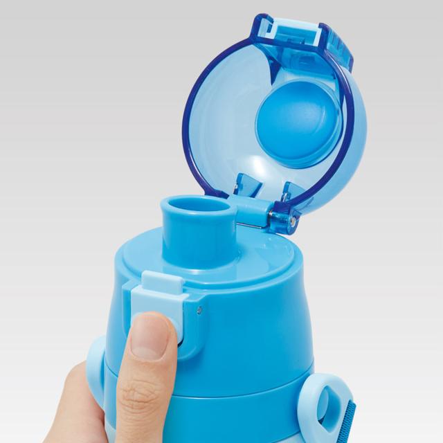 水筒の蓋はボタンを押すだけで開けることができるワンタッチ式です。飲み終わったら蓋をカチッと閉めるだけなので、小さなお子様でも簡単に開閉できます。