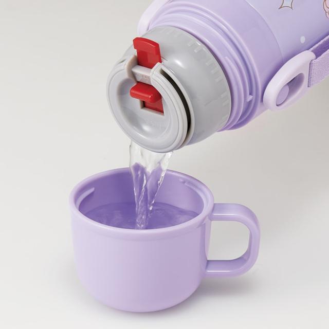 蓋と中栓を付けると、コップ飲みの水筒になります。温かい飲み物や冷たい飲み物にもご使用いただけます。