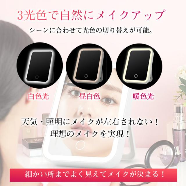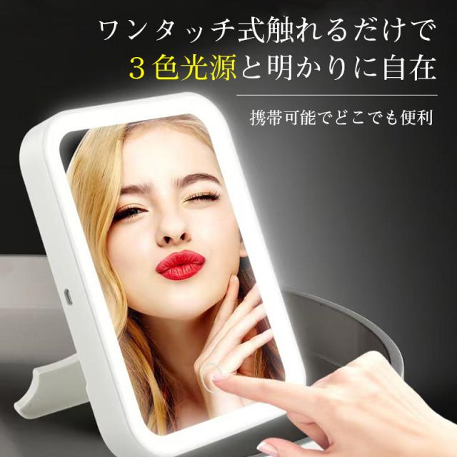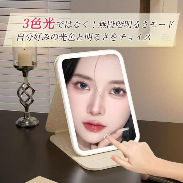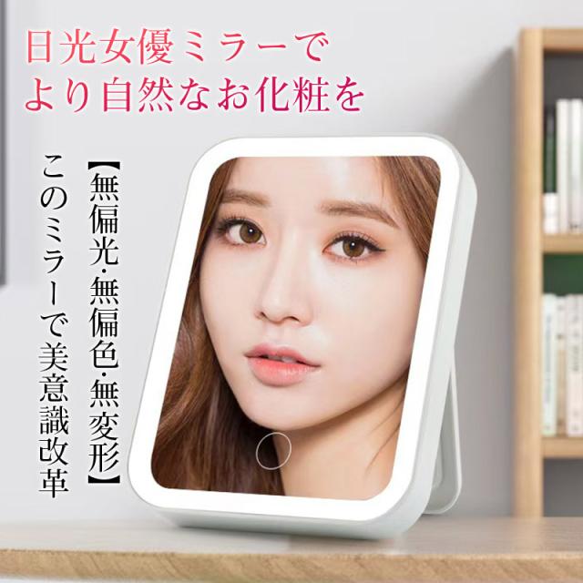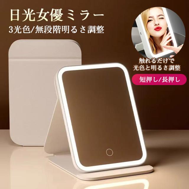 女優ミラー 卓上ミラー 日光女優ミラー 携帯型 化粧鏡 三色調光 LEDミラー 明るさ調節 タッチボタン メイクミラー 折りたたみ式 一年保証 母の日 プレゼント
