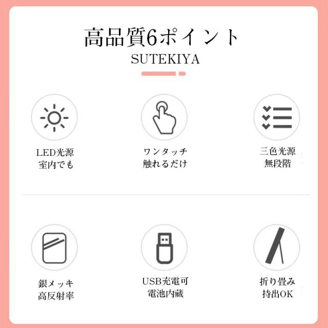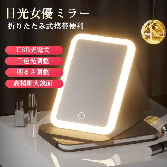 女優ミラー 卓上ミラー led 充電式 折りたたみ コンパクト ドレッサー 卓上 かわいい 折りたたみ おすすめ 鏡 ライト 日光 軽量 ミラー 持ち運び 女性