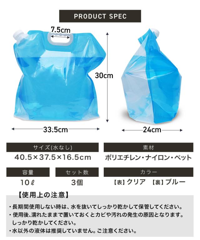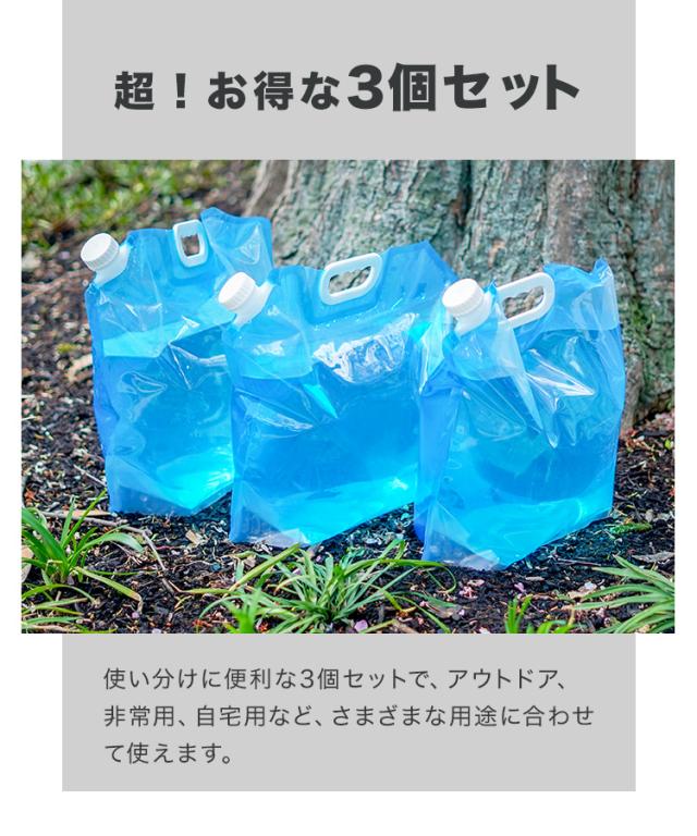 折り畳めるマチ付きウォータータンク 10L×3個セット