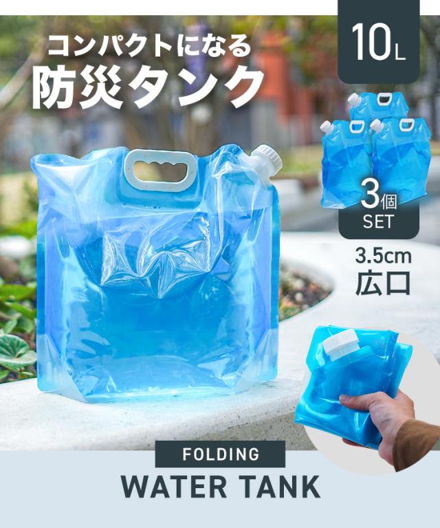 防災グッズ ウォータータンク 折りたたみ 10L 3個セット 給水 水タンク 貯水 持ち手付き 自立型 広口 給水袋 水汲み 防災タンク 給水タンク 防災 トイレ アウトドア キャンプ スポーツ レジャー 災害 防災 非常用 地震 台風 停電対策 送料無料