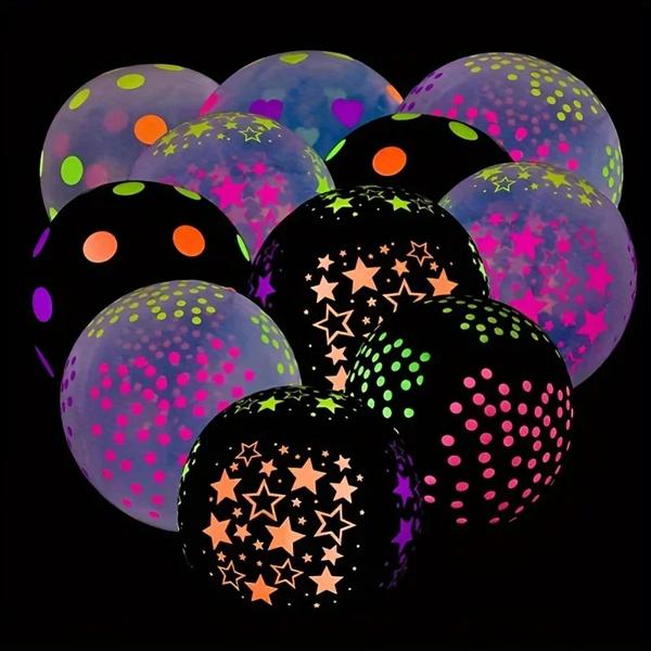 10 クリアラテックスバルーン ネオン UV ブラックライト 反応性スターバルーン スターポイント 誕生日パーティーデコレーション