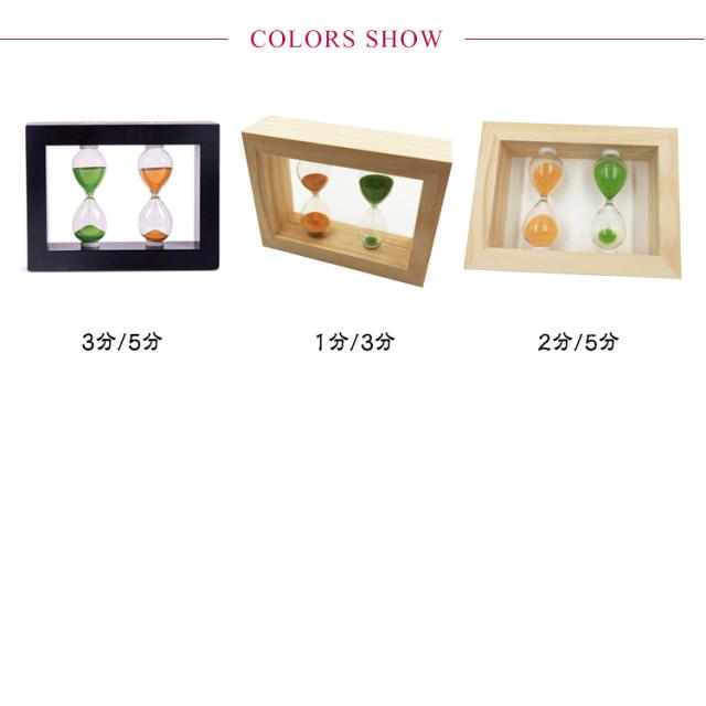 | 砂時計だけど使わくても置いておいてインテリアとしてもオススメ! 温かみのある木のフレームはインテリアとしてもオシャレな見た目です。 3パターン同時に測ることができるので用途に合わせて、インターバルチェック等様々な用途でご利用いただけます。 勉強や歯磨き、キッチンからエクササイズ等さまざまなシーンで活躍します。 | |