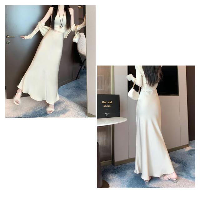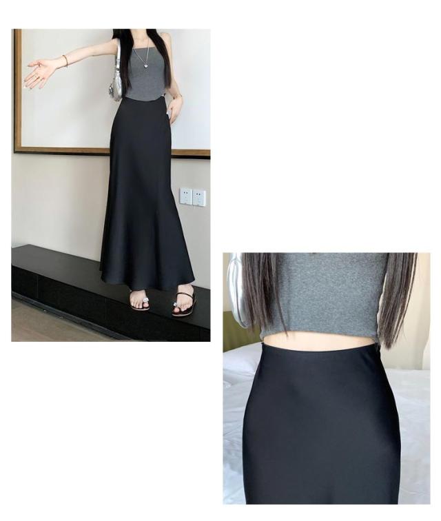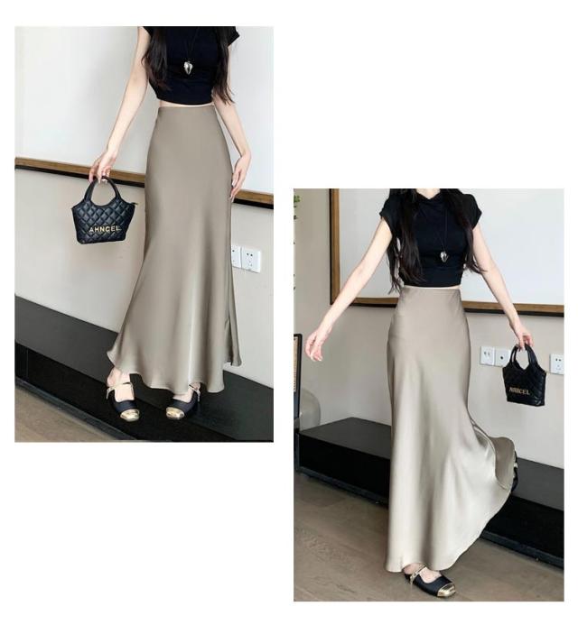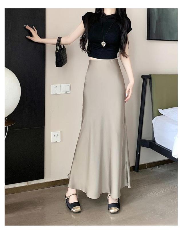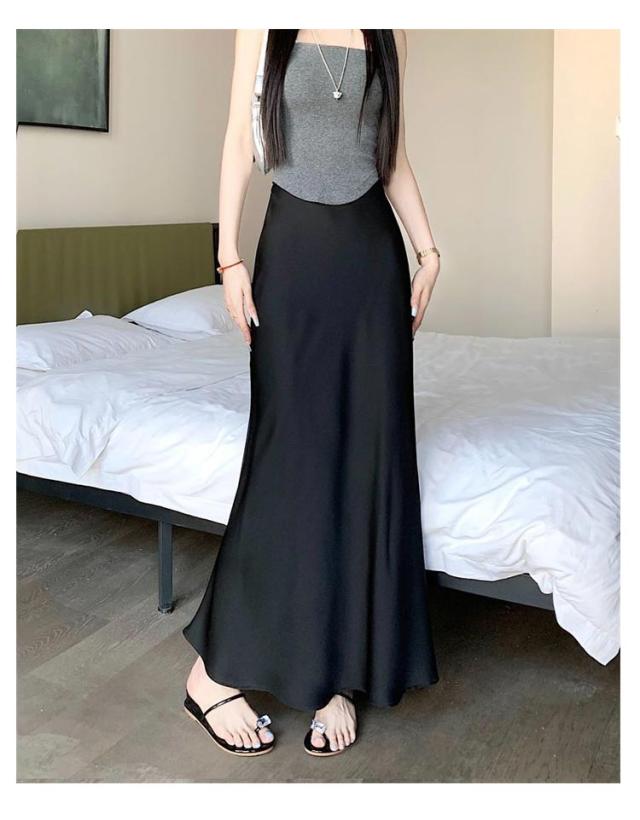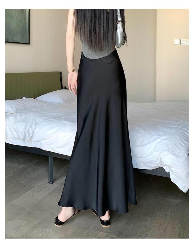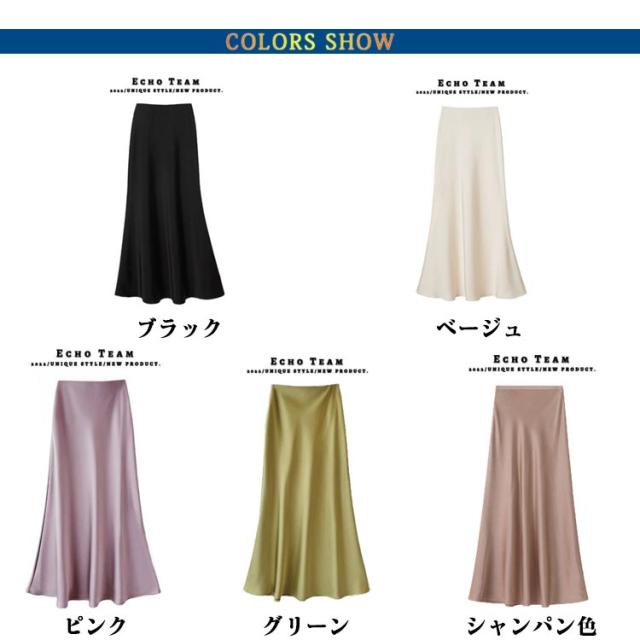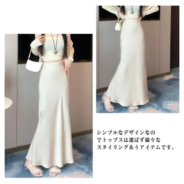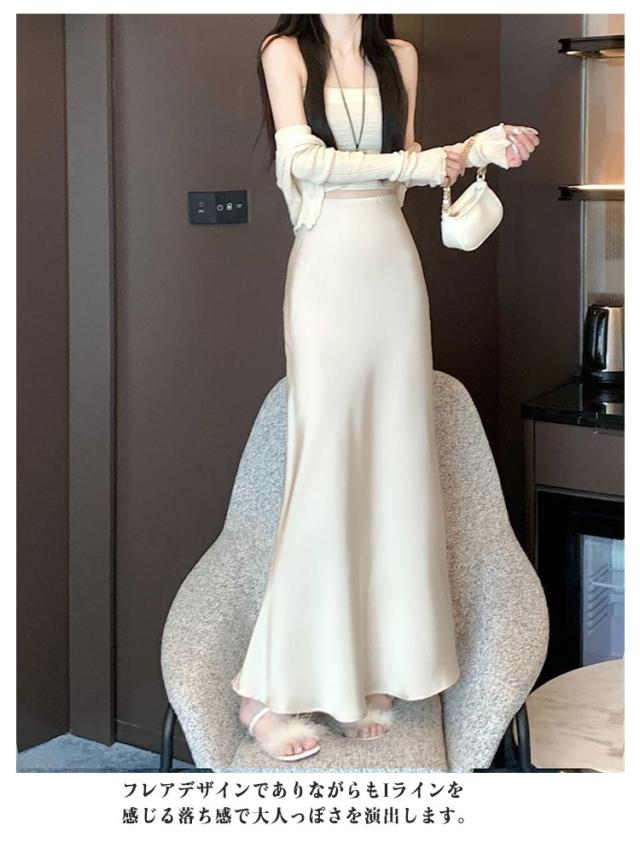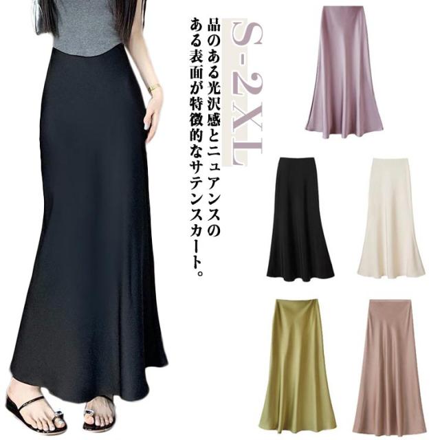マーメイドスカート ハイウエスト レディース タイト サテンスカート フレアスカート 春 夏 無地 ロングスカート 光沢感 着痩せ きれいめ 上品 トレンド オフィス