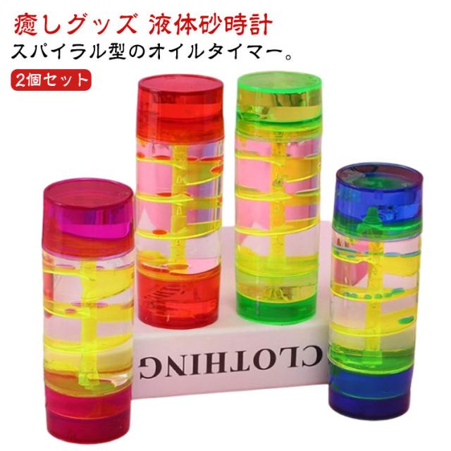 | スパイラル型のオイルタイマー。【2個セット】 カラフルな液体の泡がゆっくりと落ちるストレス軽減効果のあるオイルタイマーです。 癒しグッズ或いはストレス解消用のおもちゃ/癒されるオイルタイマー / オイルモーション として使えます。エネルギーを使い果たしても、回転するだけでやり直します。 書斎の本棚や窓際のスペース、キッチンのカウンターなど、オブジェとして飾るだけでも素敵な存在感です。 誕生日プレゼント、クリスマス、友人、恋人への贈り物としてもオススメです。特に好奇心旺盛の子供にも喜ぶおもちゃでしょう。 | |