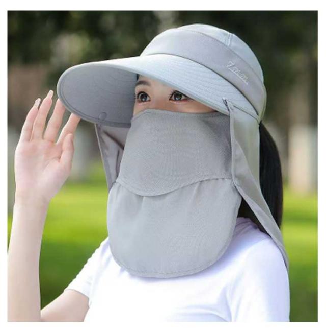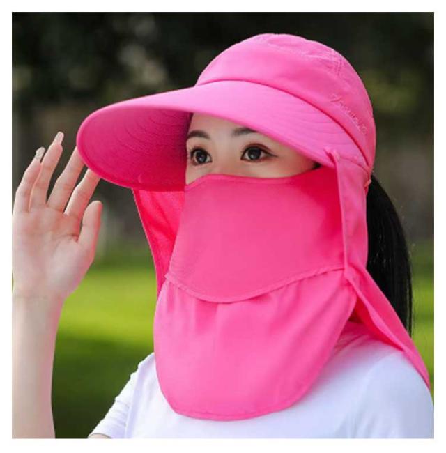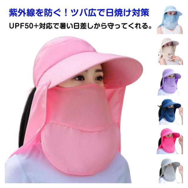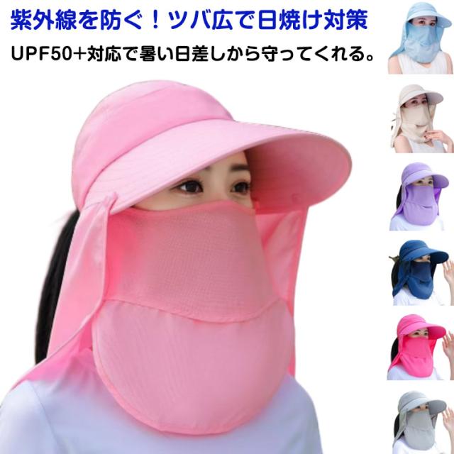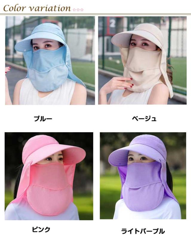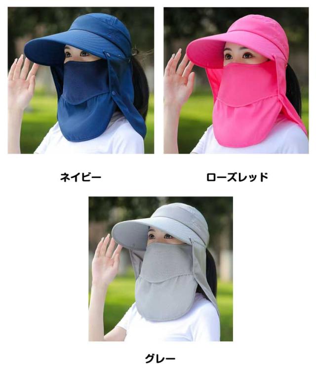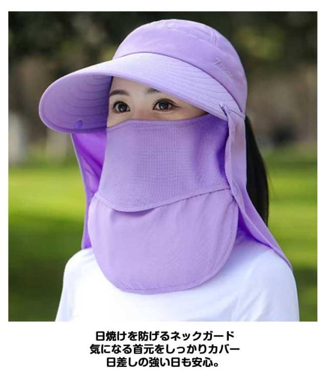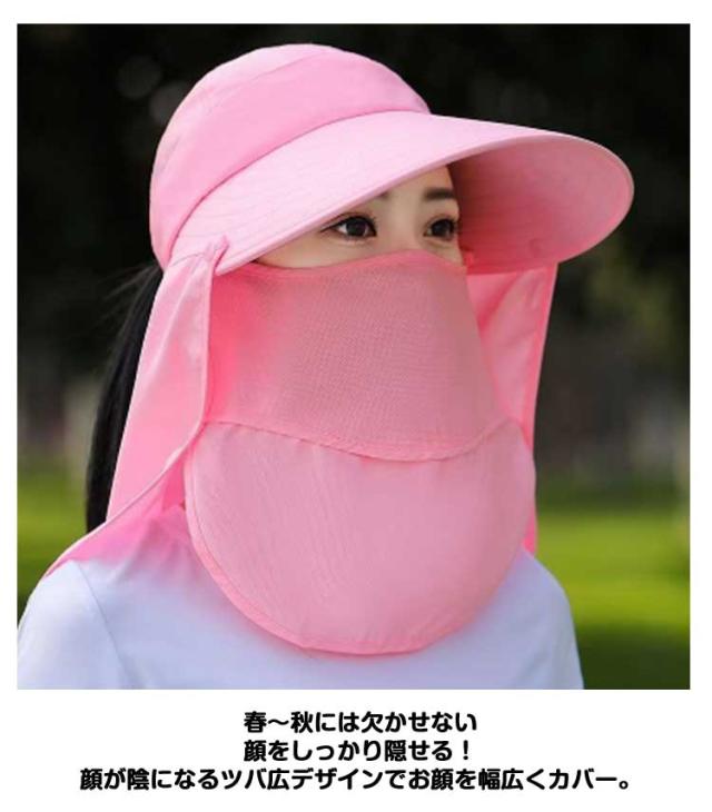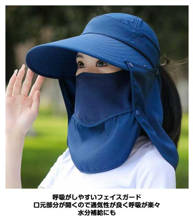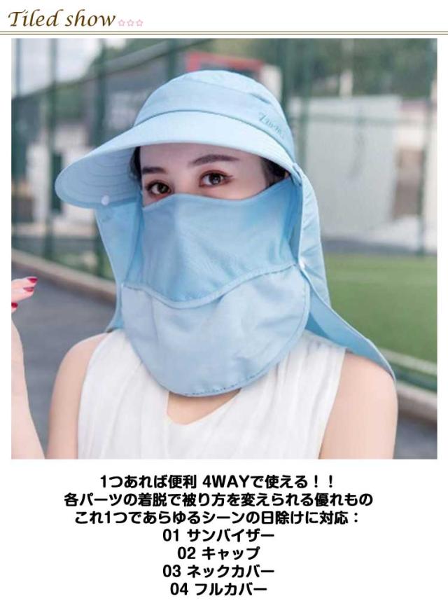 秋 春 レディース UVカット ネックカバー 夏 グッズ サンバイザー 紫外線対策 キャップ 日よけ 帽子 農作業 フェイスカバー 水分補給 折りたたみ 4way キャップ 収納 ボタン取り外し 顎紐 つば広 無地