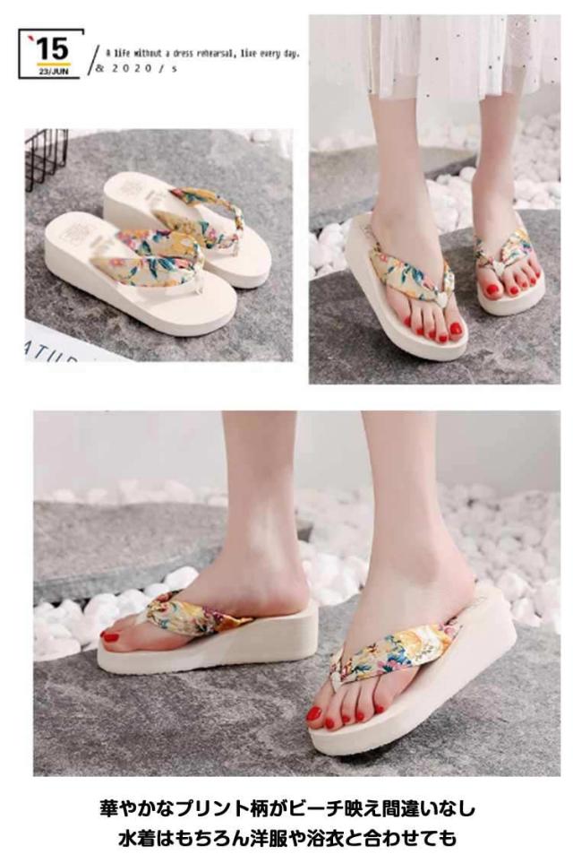 歩きやすい 厚底 レディース 花柄 ビーチサンダル タウン用 軽い ヒール 海 痛くない レジャー用 ビーチサンダル 女性用 履き心地 おしゃれ かわいい 軽量 滑り止め 可愛い 夏 ビーサン