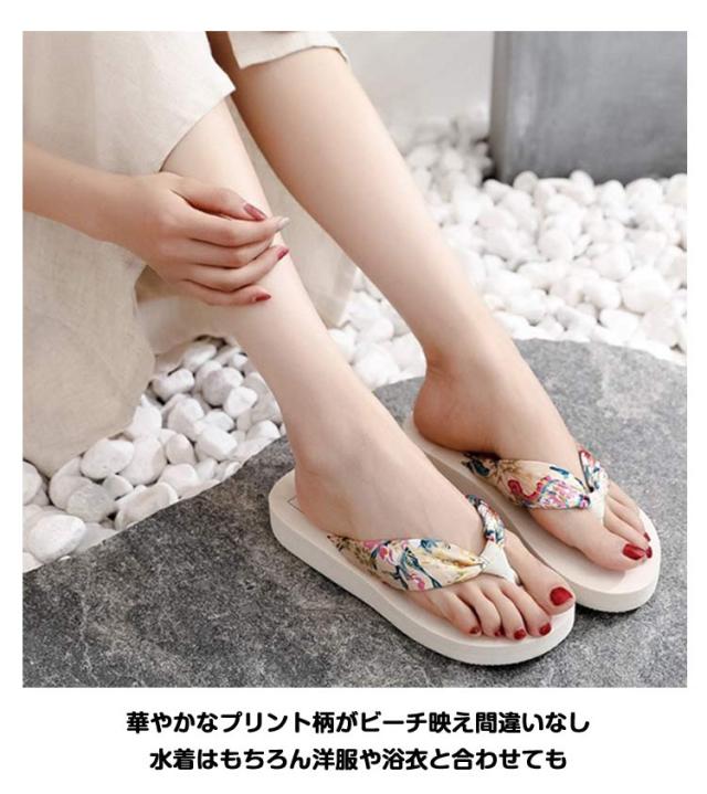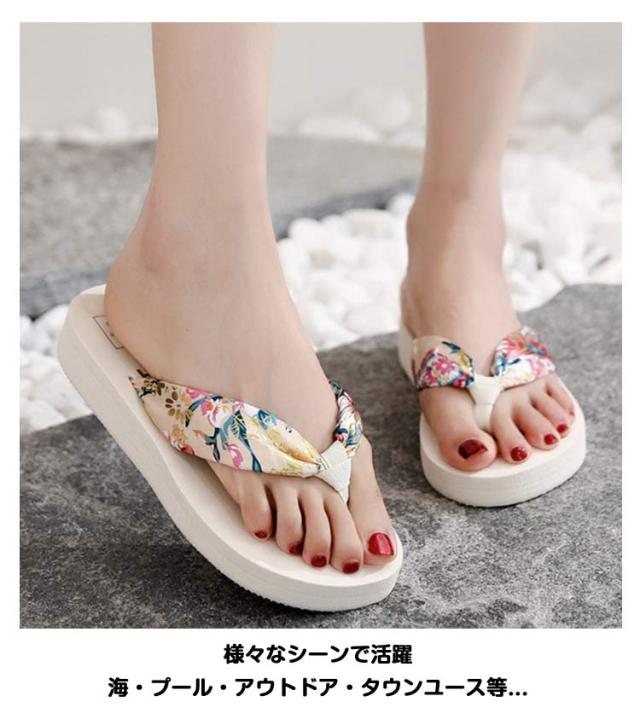 ビーチサンダル 痛くない レディース 厚底 歩きやすい 履き心地 花柄 ヒール タウン用 おしゃれ レジャー用 海 女性用 軽い トングサンダル かわいい 軽量 滑り止め 可愛い 夏 ビーサン