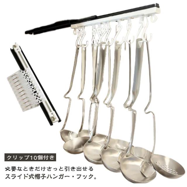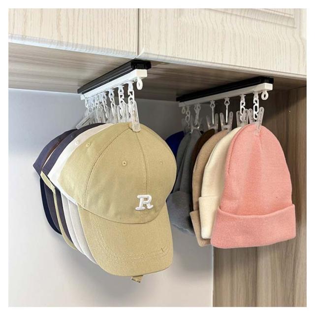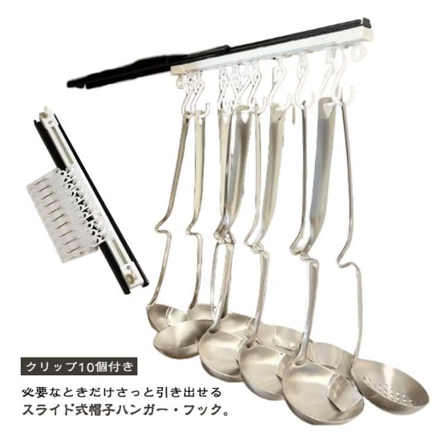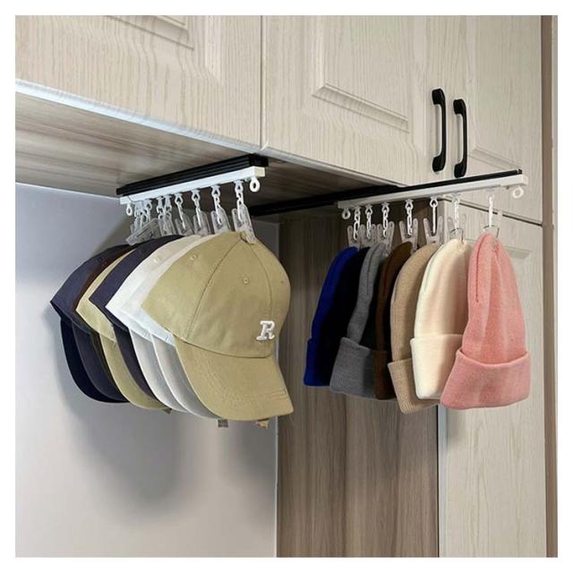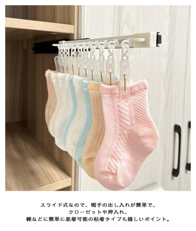 帽子ラック 靴下 帽子ハンガー 帽子ホルダー クリップ10個付き スライド式 キッチンツールホルダー スライドハンガー 下着 ハンガー クローゼット 収納 ウォールハンガー 帽子掛け スライド式 収納ラック