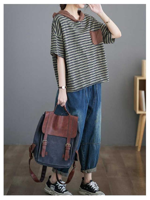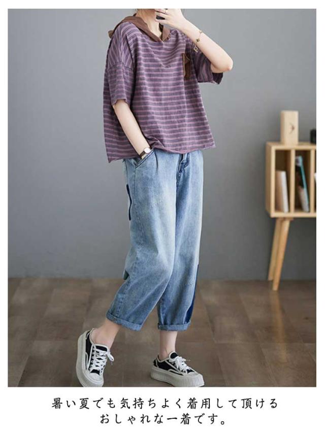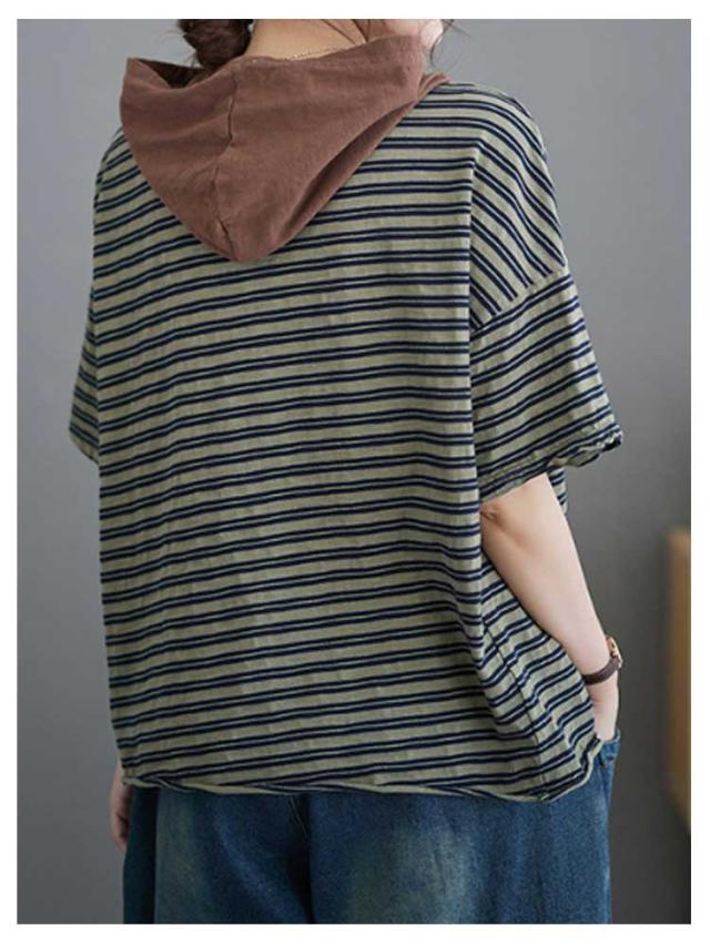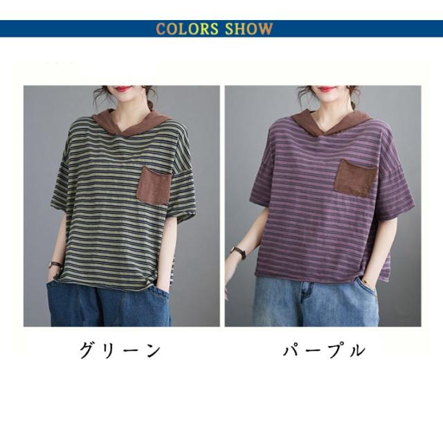 Tシャツ トップス 半袖 tシャツ 春夏 フード付き ゆったり レディース ボーダー 夏 フード付き ポケット付き 大きいサイズ カットソー 着回し きれいめ 涼しい 母の日