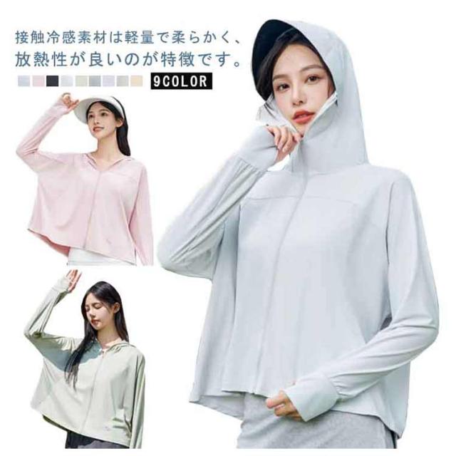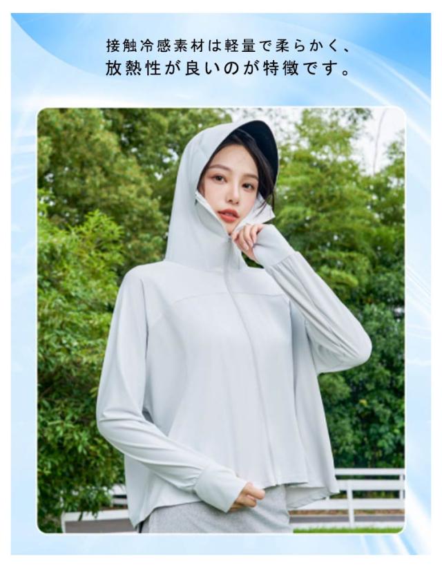 フード付き ジャケット 長袖 パーカー uv 涼しい パーカー uvカット スポーツ レディース ひんやり 薄手 冷感 大きいサイズ パーカー ジップアップ 日焼け対策 ゆったり ラッシュガード 体型カバー 日除け