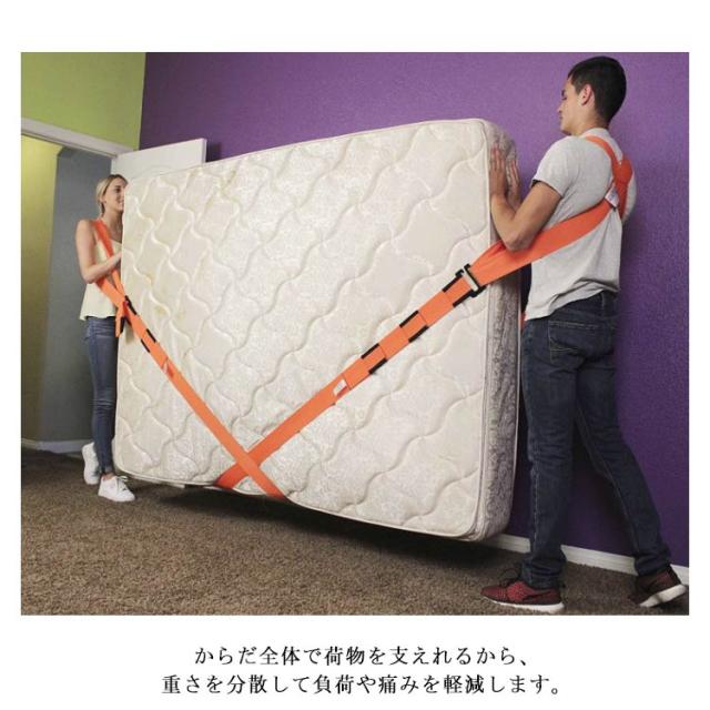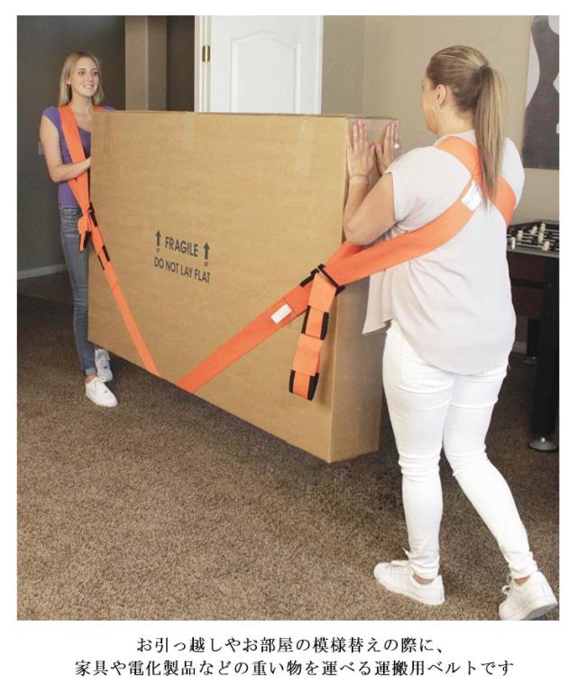| 2本セット!引っ越しベルト この引っ越しベルトがあれば女性でも2人で軽々と運べるようになります。 お引っ越しやお部屋の模様替えの際に、家具や電化製品などの重い物を運べる運搬用ベルトです 軽量で耐久性があり、長時間使用することができます。 からだ全体で荷物を支えれるから、重さを分散して負荷や痛みを軽減します。 運搬ベルトは長さが簡単に調整できます。長すぎる、短すぎるという心配はありません。身長にかかわらず、誰でも運搬物を安全に楽々運ぶことができます。 | |