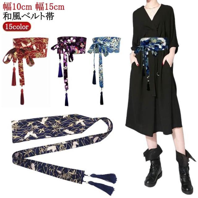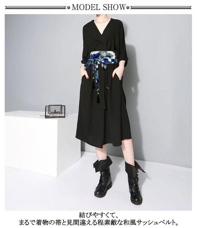 ベルト帯 サッシュベルト 和風 和柄 浴衣 着物 帯 太ベルト 鶴 和風ベルト おしゃれ 帯ベルト 大人 レディース 送料無料 衣装 帯風ウエストベルト コルセット ウエストマーク 着物風 フリンジ タッセル サッシュベルト帯 浴衣帯 洗える 送料無料