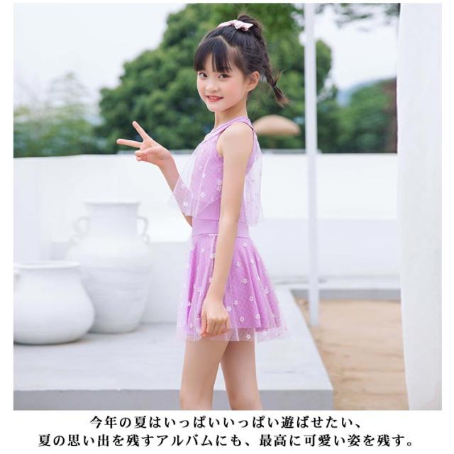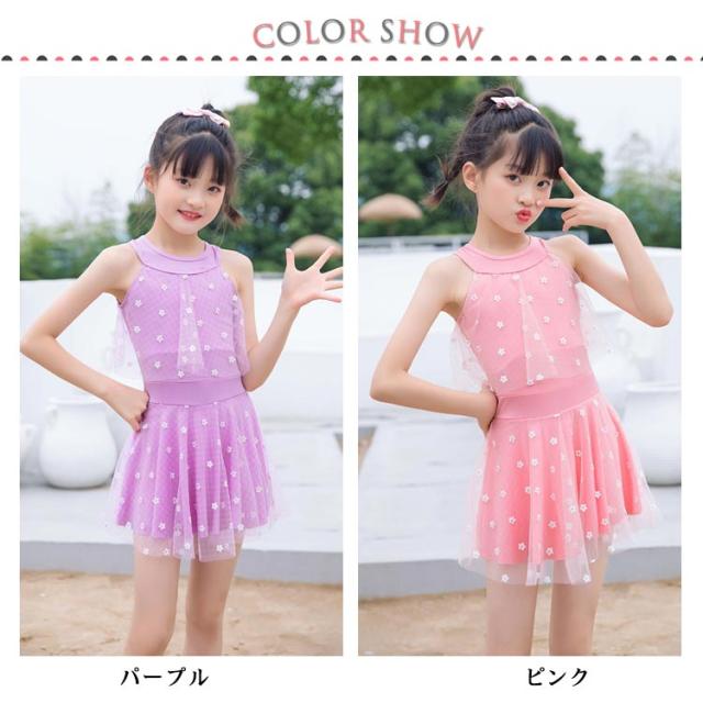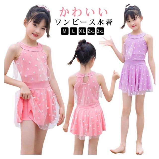 女の子 水遊び 水着 女児 花柄 おしゃれ かわいい 子供水着 ワンピース ジュニア キッズ 体型カバー ガールズ 小学生 女子 チュール プール 海 動きやすい M L XL 2XL