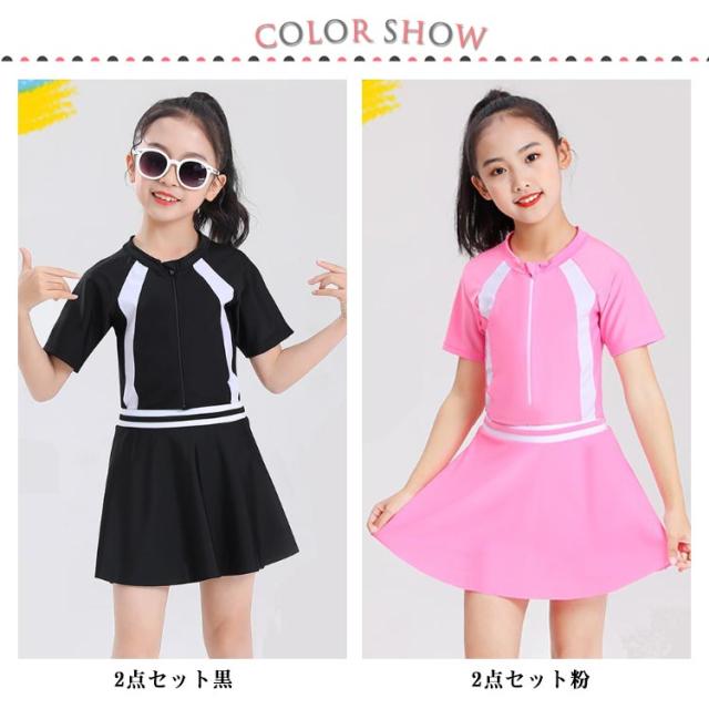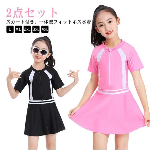 水着 海 子供水着 子供 スカート付き スクール水着 セットアップ 学校用 キッズ キッズ水着 かわいい セパレート 半袖 速乾 スカート付き 2点セット ビーチ ストレッチ シンプル 女の子 プール L XL 2XL 3XL 4XL