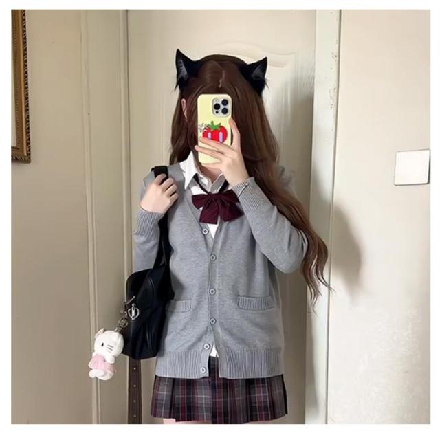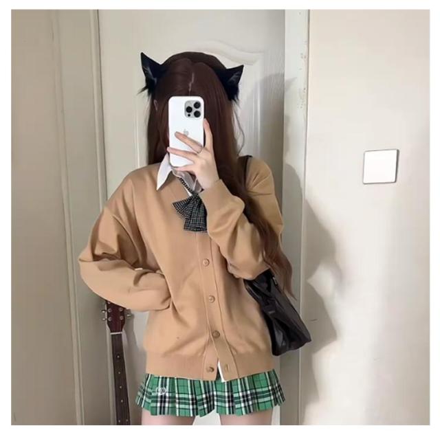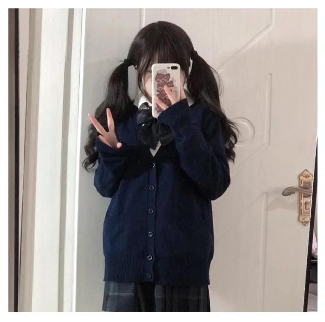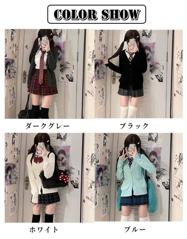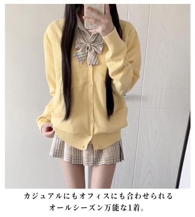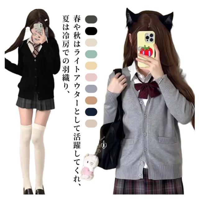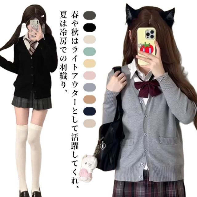 長袖 トレンド Vネック JK制服 春 秋 無地 スクールセーター アウター定番 カーディガン ニット 中学生 ファッション 入学 レディース 羽織 ゆったり 学生 カジュアル 体型カバー 大きいサイズ 新学期 通学 UV対策 黒 ブラック