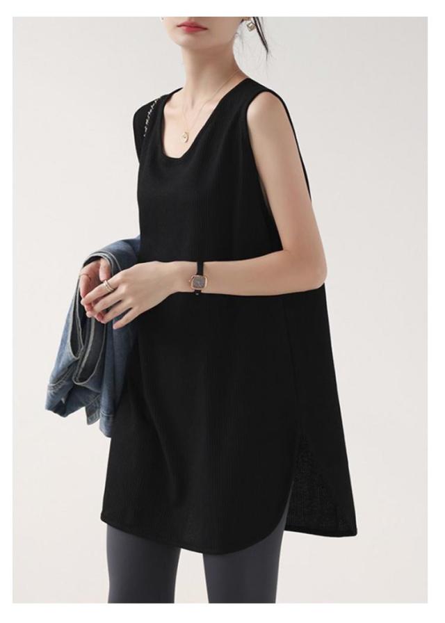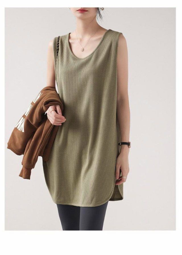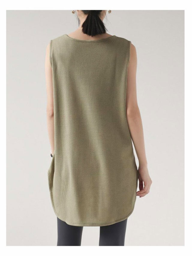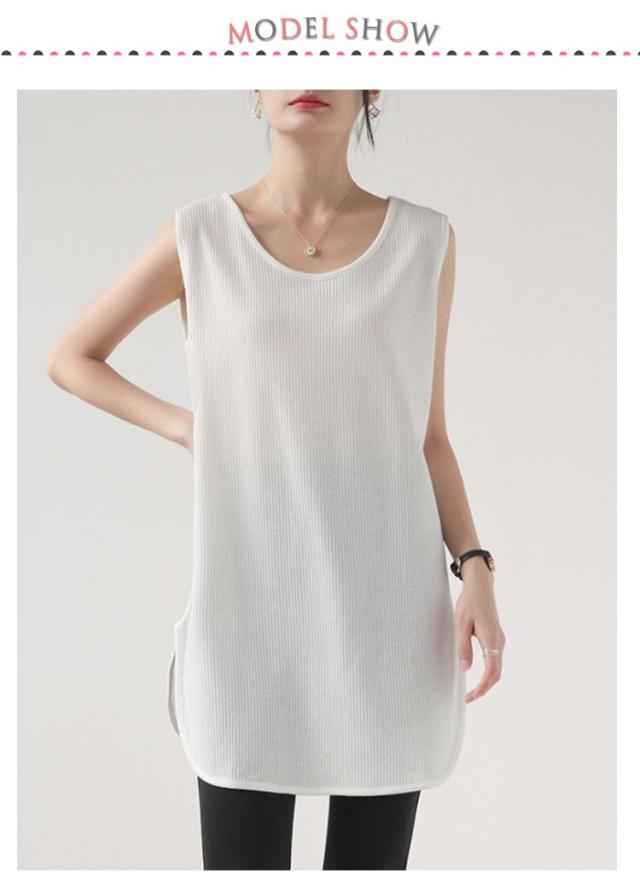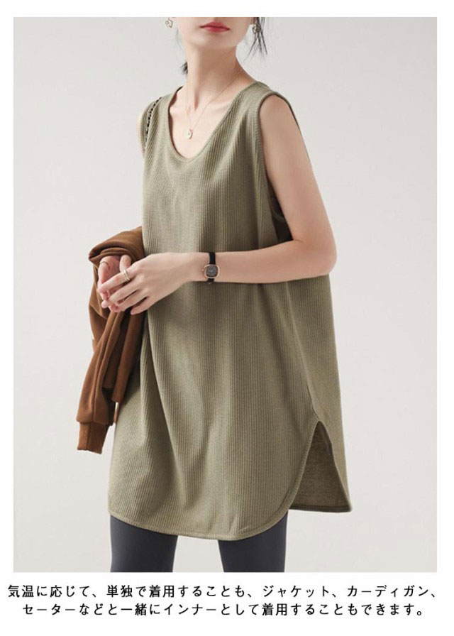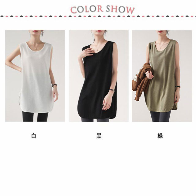 Uネック チュニック丈 ワッフル生地 ワッフル生地 タンク トップス タンクトップ ノースリーブ カットソー 無地 レイヤード インナー ゆったり チュニック ロング Tシャツ お腹カバー 体型カバー お尻カバー大きいサイズ 春 夏 白